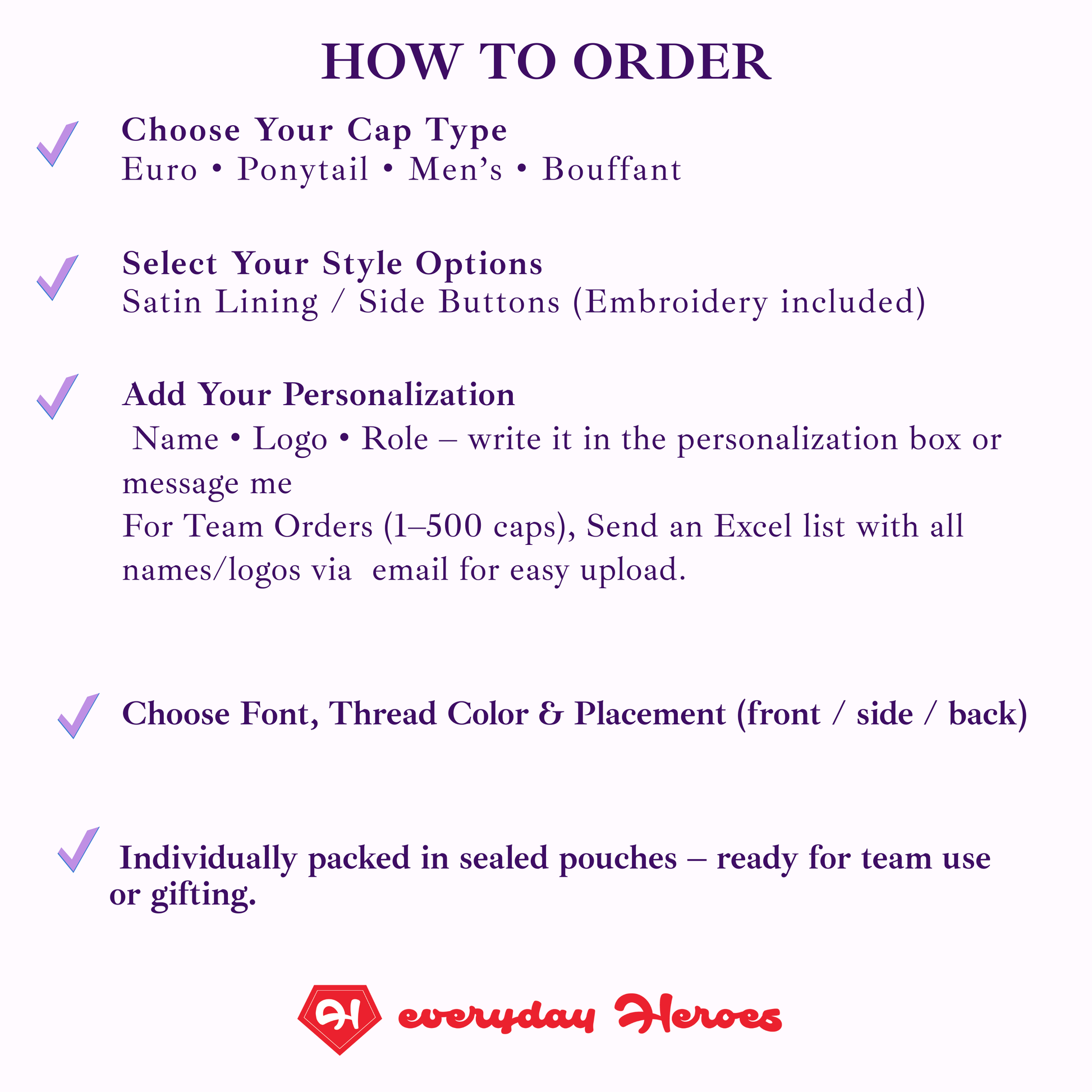 Whether you need one personalized scrub cap or 500 for your hospital team, weโve got you covered.